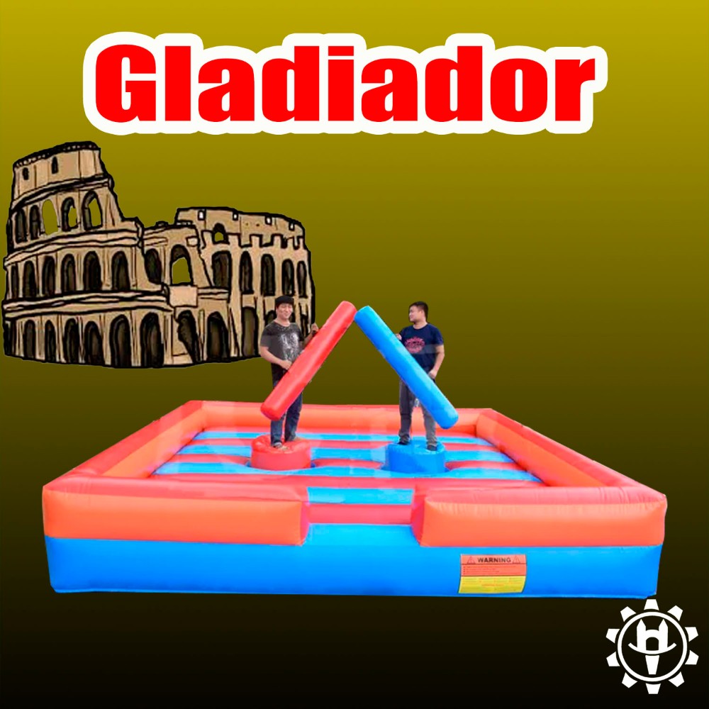 Inflable deportivo, ideal para competencias de destreza con capacidad para 2 participantes simultaneos, incluye 2 cotonetes de hule espuma forrados de lona de uso rudo. fabricado con lona de 18oz en el piso para mayor resistencia.